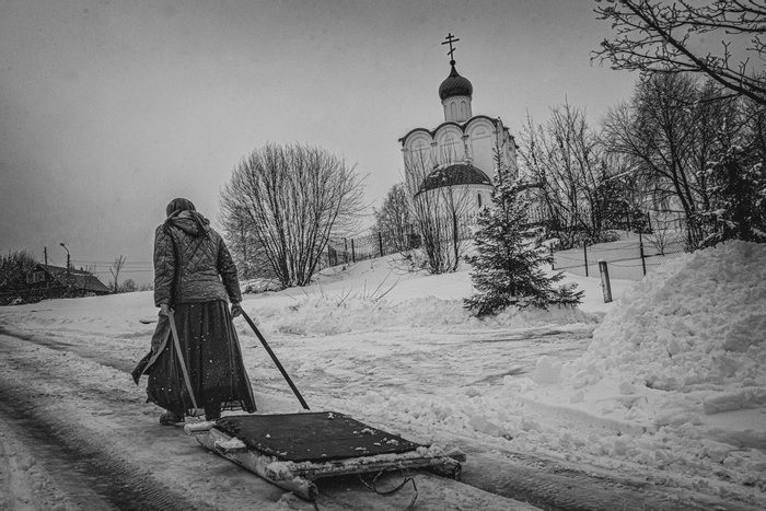 баба, церковь и телега.