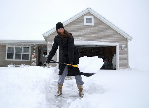 Вот, так и надо, с дорожек, убирать снег.