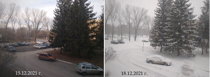декабрь в моём городе до и во время долгожданного снегопада, 15 и 18 декабря 2021 г.