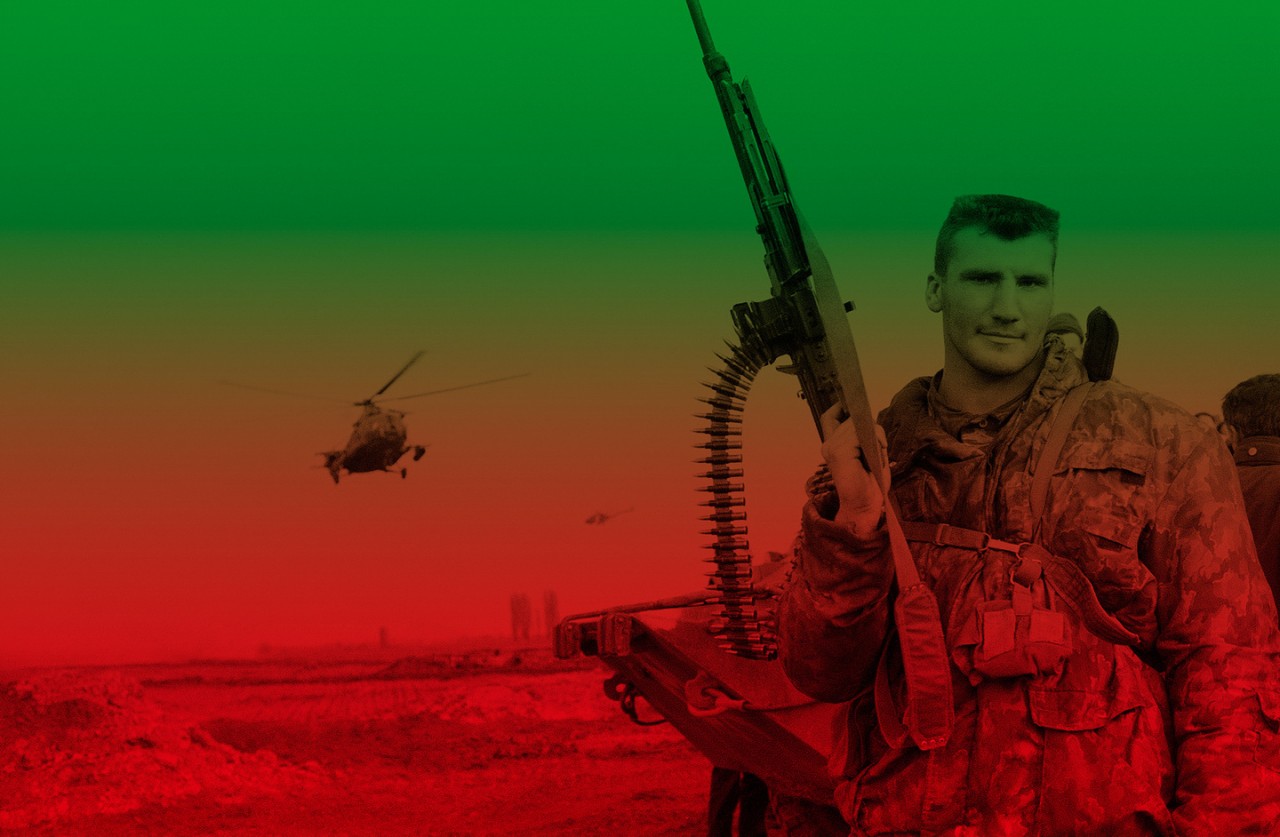 В ладонях автоматы.