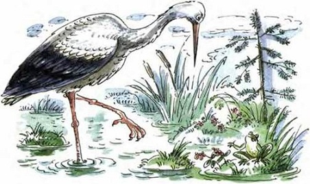 По болоту ходит аист,