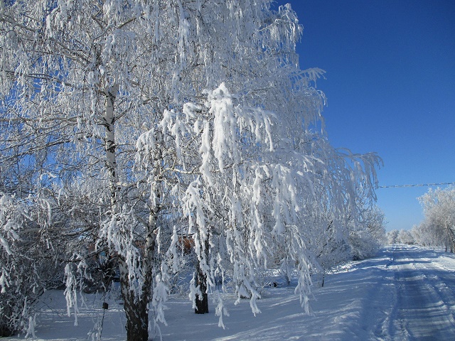 Деревья в белоснежных шубках.
