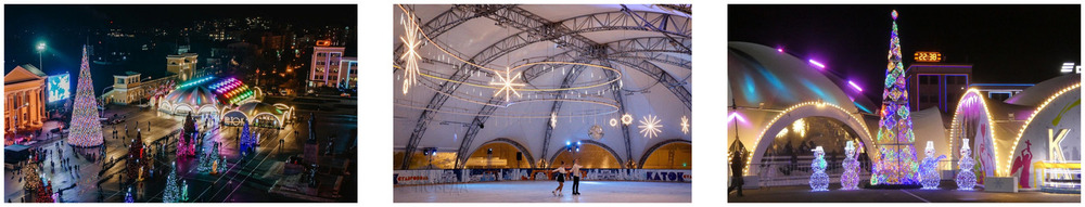 Коллаж: главная площадь Ставрополя предновогодняя.