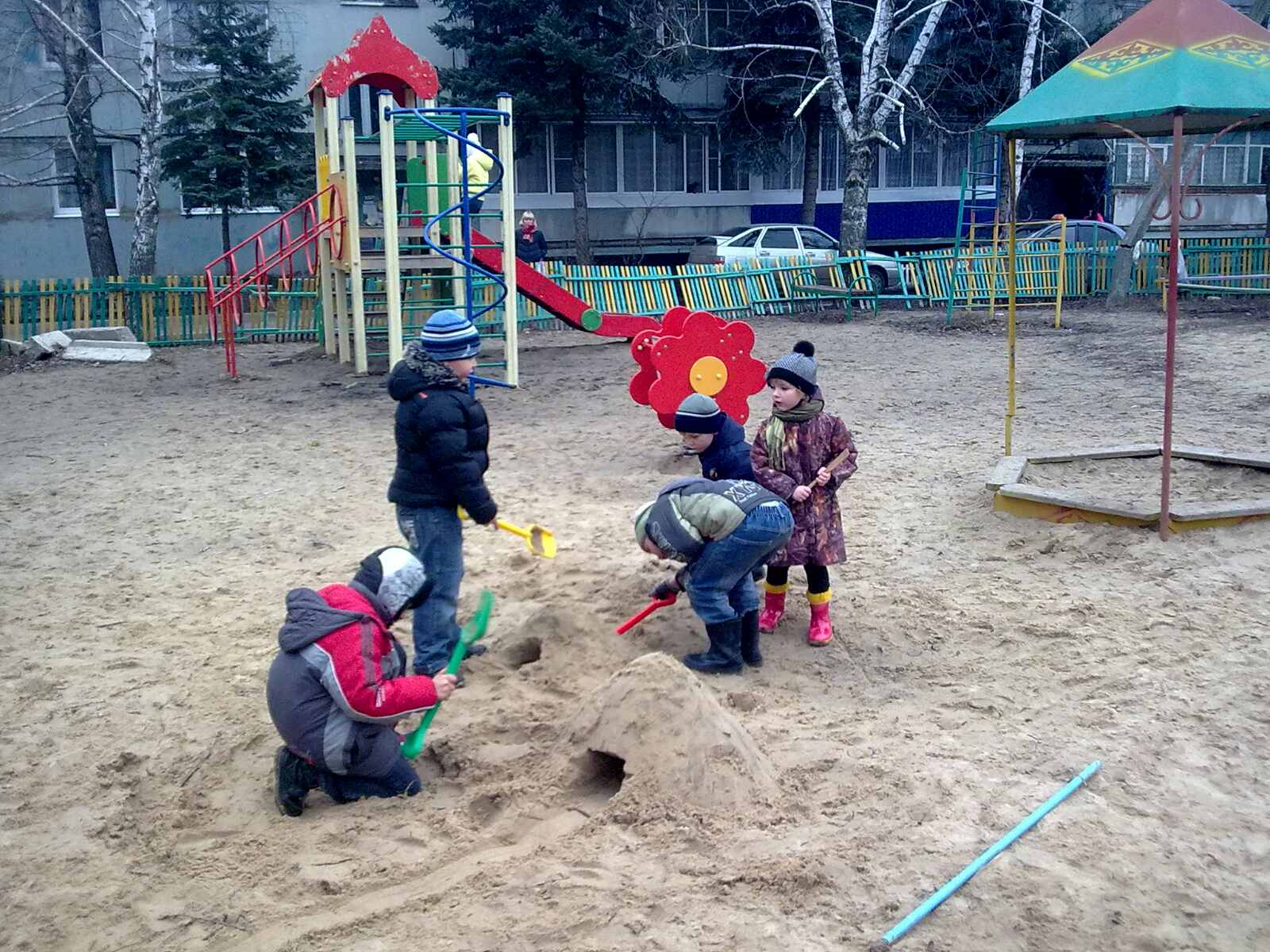 Однажды с моей дочкой мы вышли погулять. Во дворе было шумно. Дочка подошла к горке, с которой весело катались мальчишки и спросила-«можно поиграть с вами?-»в ответ услышала такие слова-«мы с малышами не играем-». Из детских глаз потекли слёзы. Я был озадачен, это было не то, на что мы рассчитывали, когда выходили гулять. Нам хотелось как-то развеяться, повеселиться. Что же делать? В то время я уже 6 лет находился среди людей, которые изучают Евангелие и посредством молитвы общаются с Богом, я подумал почему бы не помолиться? Я мысленно обратился к Нему-«Господи, что же делать?»- и никакой чёткой инструкции я не услышал. Через минуту пришла мысль и желание покопаться в песке, построить горку и сделать в ней тоннель. Я так и сделал. Уже через 5 минут горка с тоннелем была готова. Я не знал, к чему это может привести, но результат был потрясающим. Мальчишки на горке заметили этот тоннель, их это очень заинтересовало, они спустились и подошли к нам .-«можно с вами поиграть ?»-спрашивали они.Что чувствовала в этот момент моя дочь?.-«Это мой папа построил» -сказала она. Я был благодарен Богу за ответ.-«подходите все, песка много, на всех хватит»-сказал я. Юные строители принялись за дело. Когда я спрашиваю дочь обращая внимания на эту фотографию, помнит ли она эту историю, она говорит, что не помнит, только осталась фотография и мои воспоминания. Это прекрасно, когда с нами всегда наш Господь Бог!