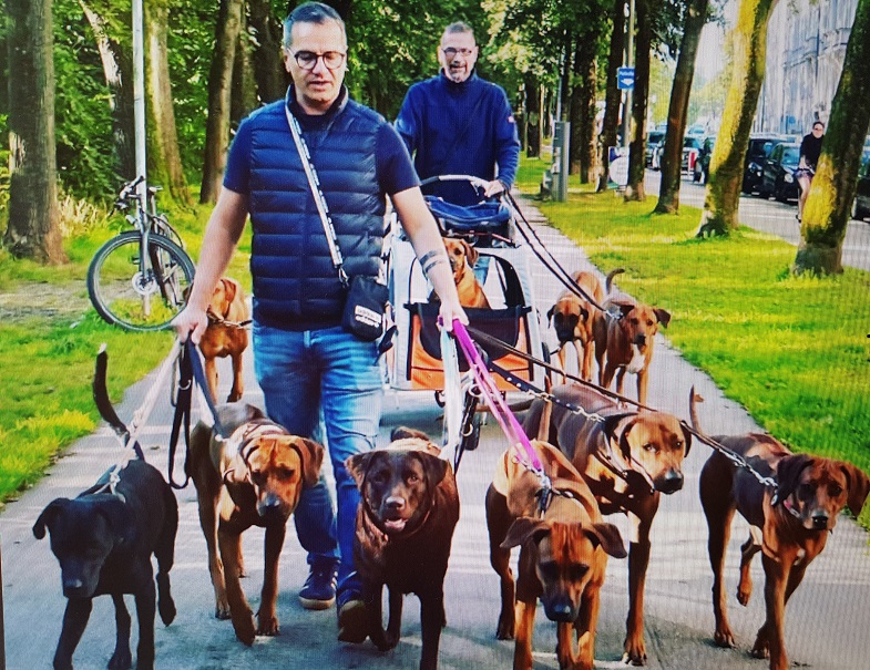 И вот сегодня все мои вопросы получили ответы. Оказывается, в этой семье (Вилли и Вольф живут вместе, они партнеры) организован семейный отель, где псы фактически живут и учатся, для собак одной породы - родезийский риджбек. Они берут собак на полдня, на день, на 5 рабочих дней в неделю и даже на время отпуска хозяев.