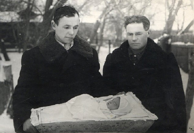 в день прощания с Надей мои папа, Клюев Яков Фёдорович (слева), и дедушка по маминой линии, Дорофеев Никита Владимирович (справа)