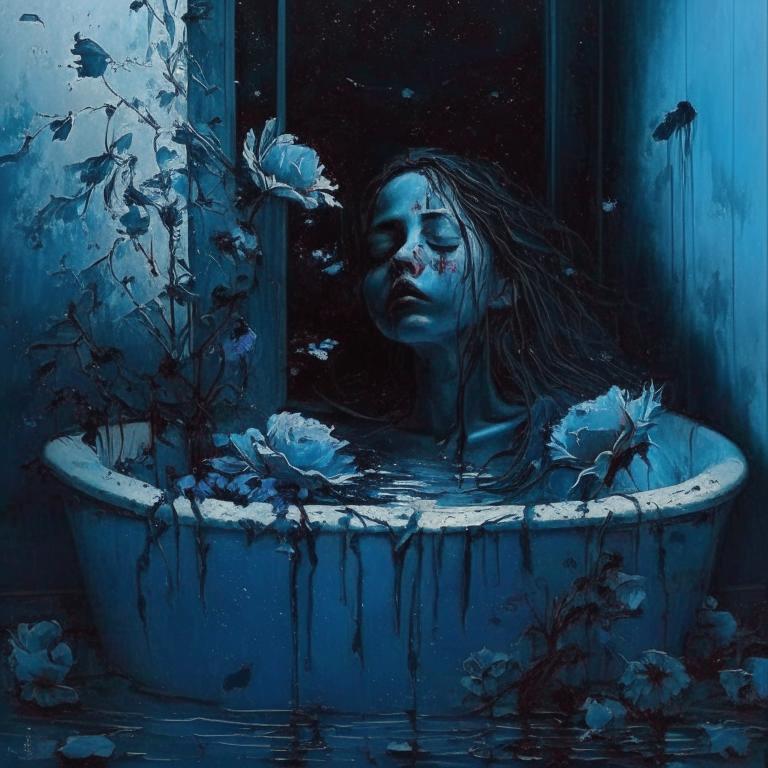 В холодной ванне, пустив кровь.
