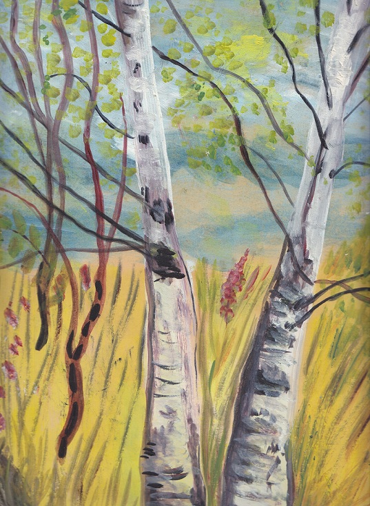 акварелька Берёзки Из чердачного окошечка 1990-е