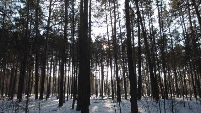 Между сосенных стволов