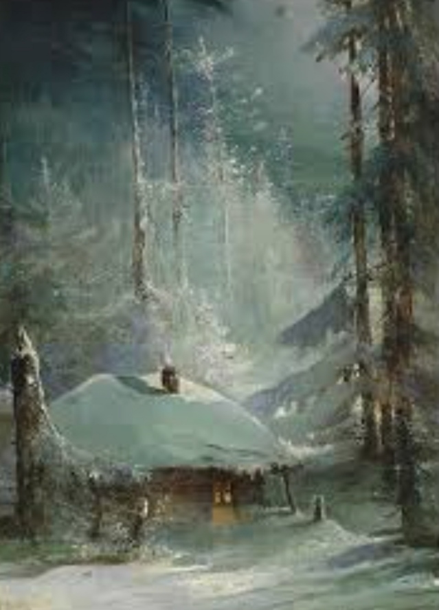 Хижина в зимнем лесу 1888