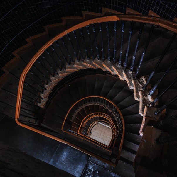 Район Невской заставы в Ленинграде-Петербурге иногда кажется давящим и мрачным. Не потому ли, что когда-то с этих заводских окраин начался крах Российской империи? Внутри старого фабричного здания еще сохранилась закрученная спиралью винтовая лестница, ведущая на пятый этаж. Она напоминает мне о сложном поступательном процессе развития, где путь наверх не выглядит гладким. Всегда хорошо видно, в какую пропасть можно легко упасть.