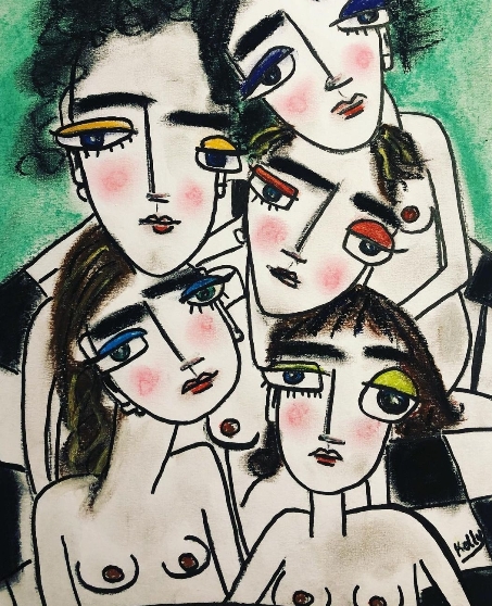 с раскрытыми бюстами, навеселе,