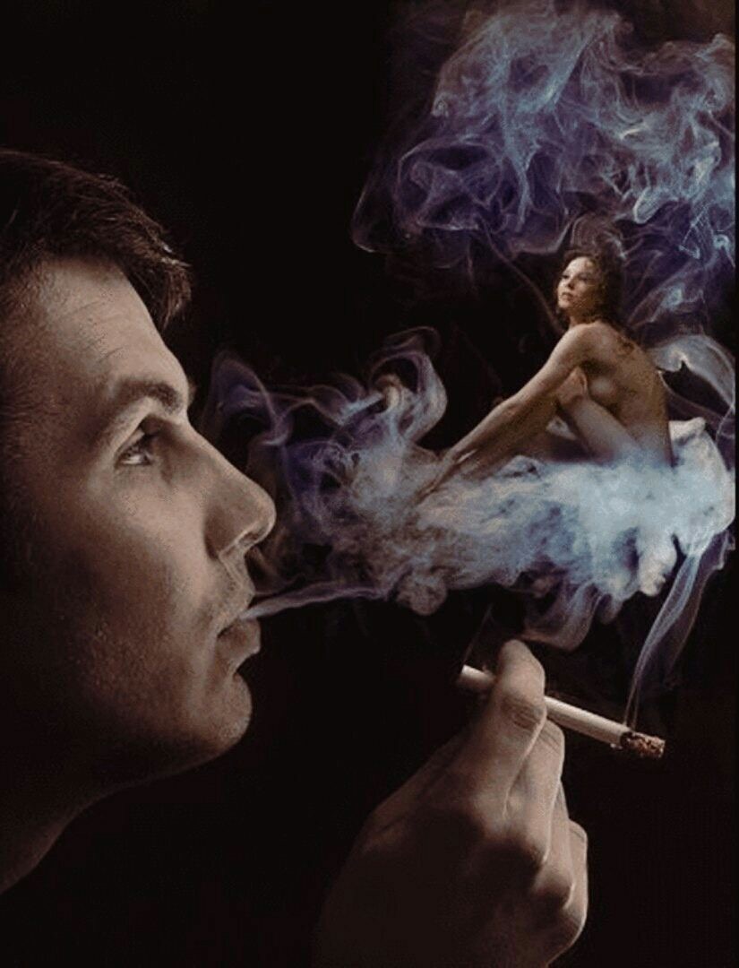 В густом дыму от сигарет.