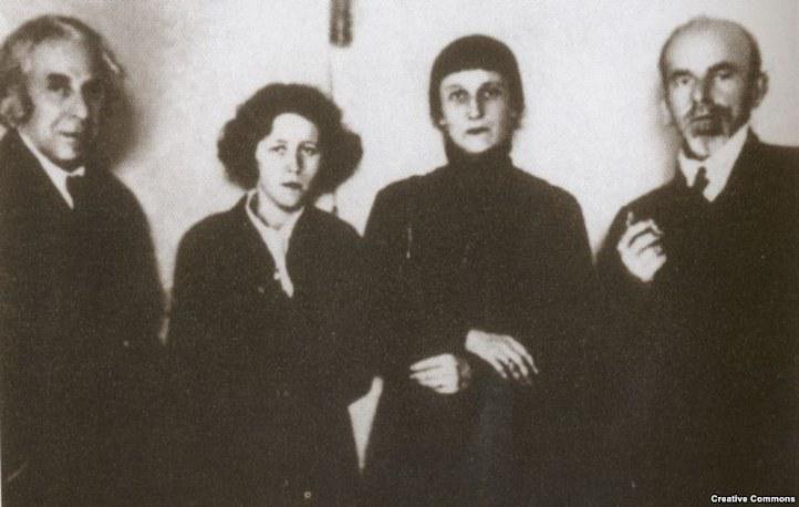 на фото Георгий Чулков, Мария Петровых, Анна Ахматова, Осип Мандельштам.
