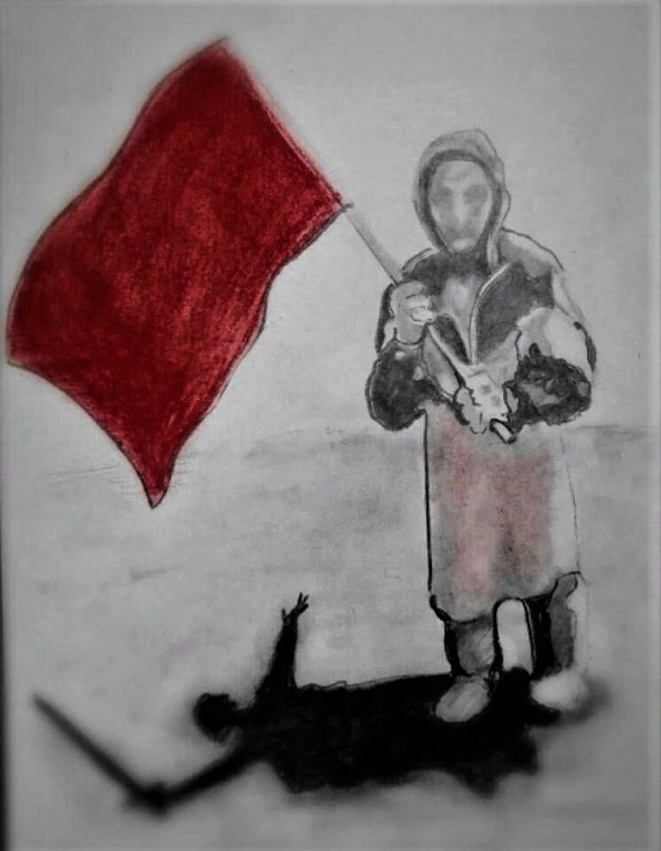 С куском парчи в кровавой пене по краям,
