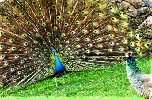 В саду павлины, меж пальм, хвост распушили,