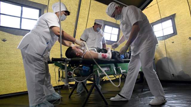 В каске, со скальпелем, в бронежилете