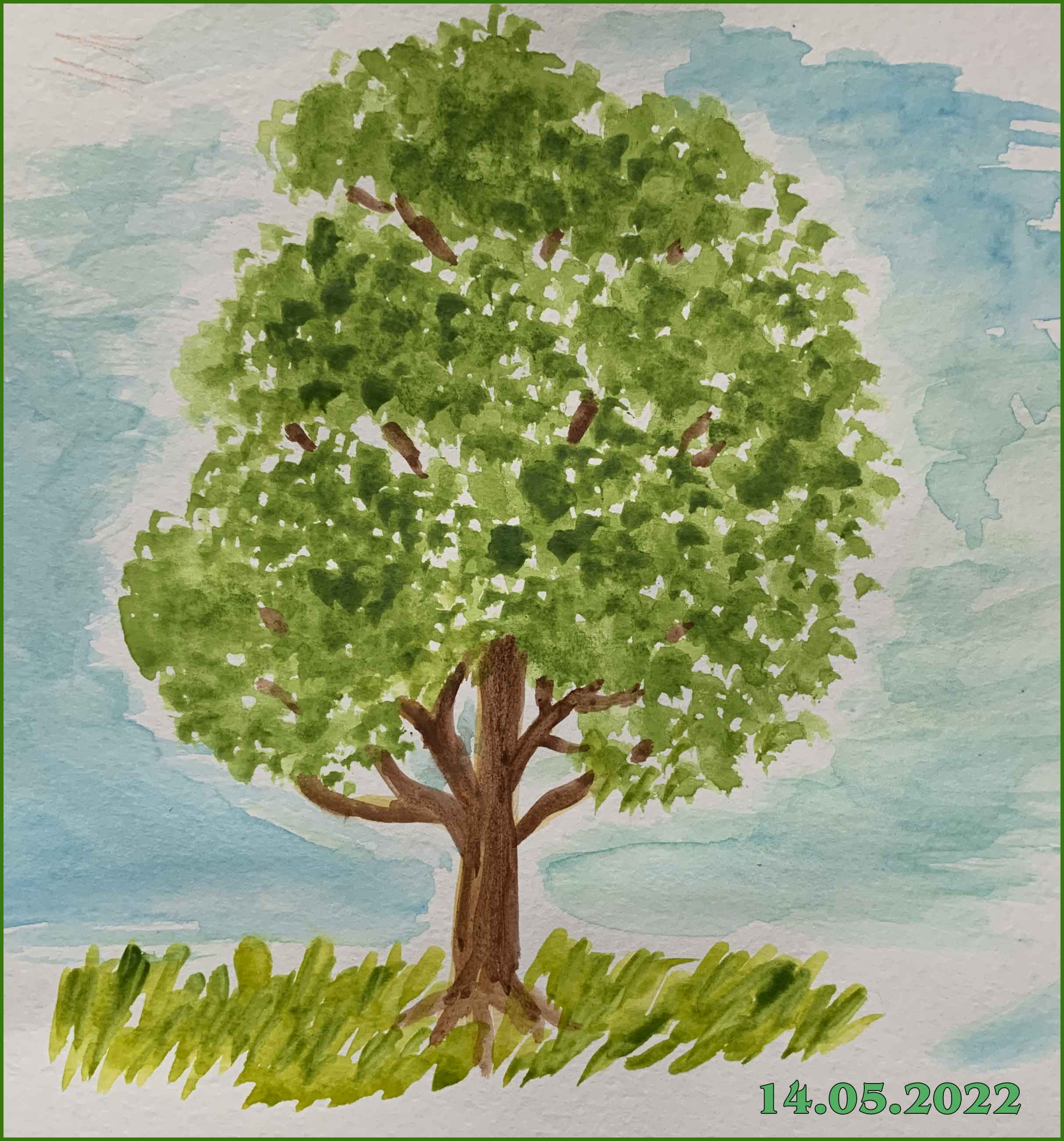 акварель медовая, бумага акварельная, полукруглая плоская кисть