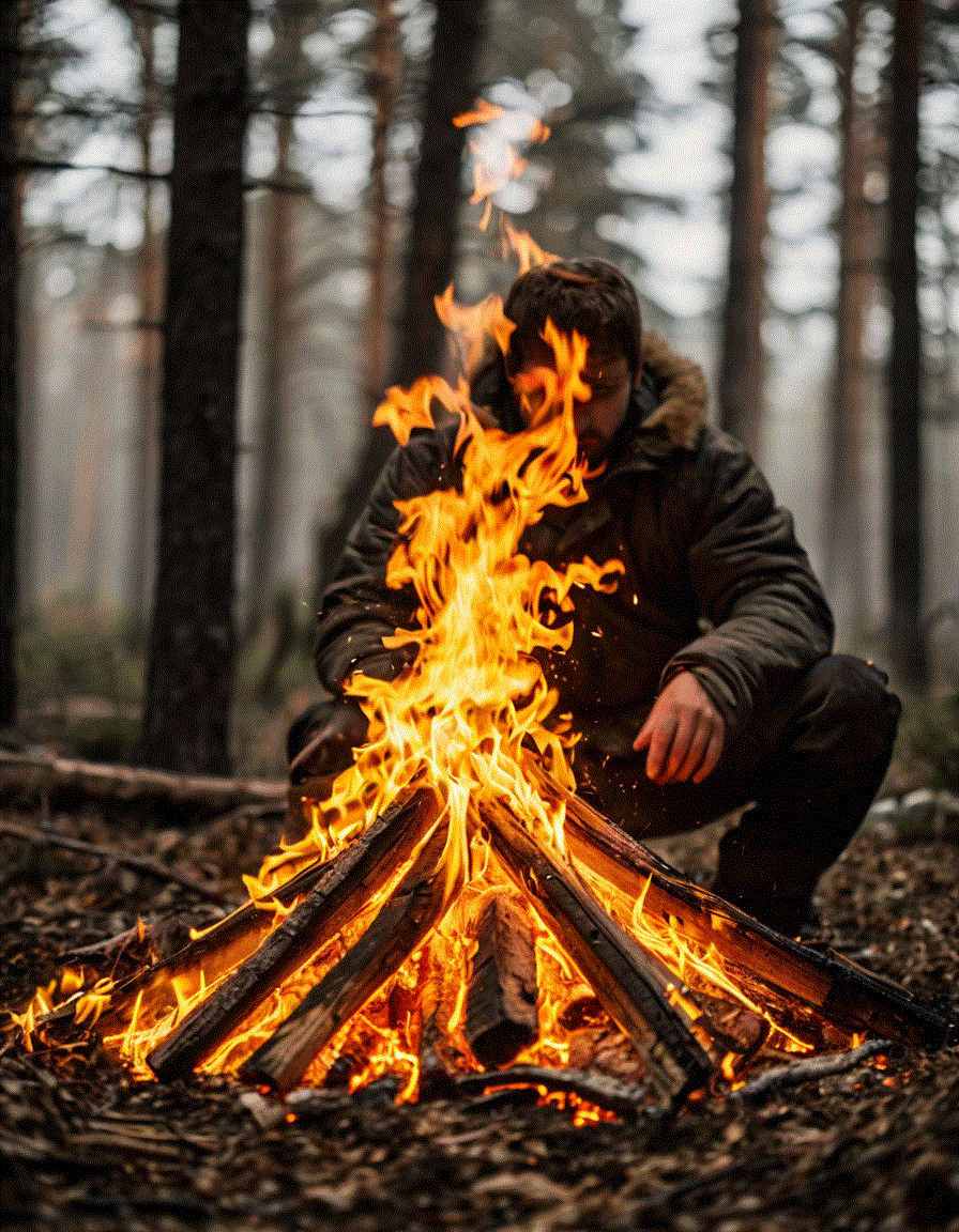 Треск дров костра и леса тишина