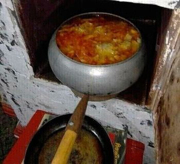 и в печи томится с супом чугунок