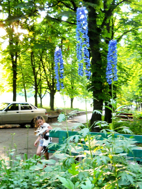 Расцветает синий дельфиниум.
