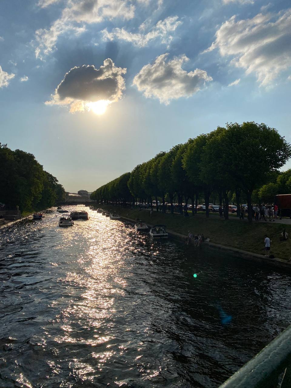 В закатном свете гладь воды,