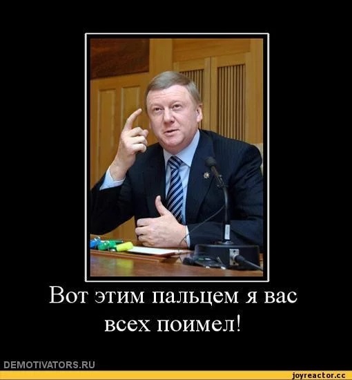 буквально все жители России. Деньги и, конечно, покровительство определённых американских кругов, от которых он в России был поставлен "смотрящим" над нашим либеральным блоком, делали из него некую демоническую фигуру "а-ля Троцкий", и подобраться к нему было практически невозможно. Годами отдельные высокопоставленные сотрудники покрывали все преступления и махинации Чубайса с госбюджетом. Это они подготовили его побег из страны. Предупредили, обеспечили объезд, а потом сказали: "Давай, а мы тут потом уже начнём".