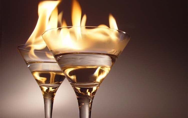 Поджигая в бокалах янтарный абсент.