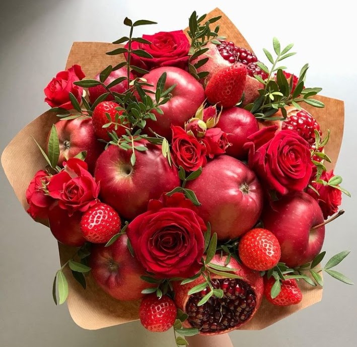 Ягодки, фрукты в букете "горят".