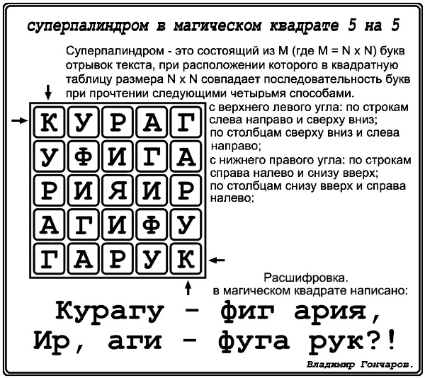 Суперпалиндром 57 - в магическом квадрате 5 на 5