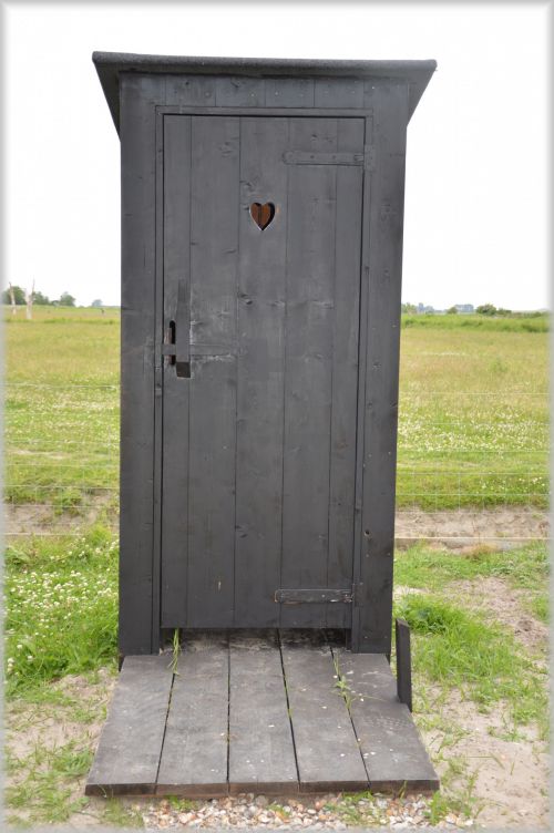 На сельский нужник с сердцем на двери.