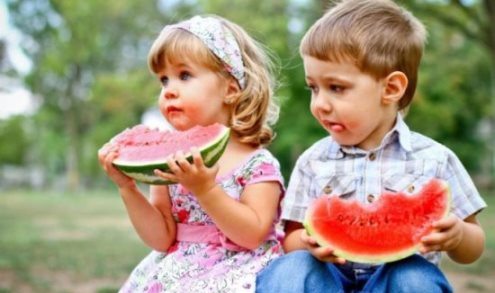 Когда ест арбузы.