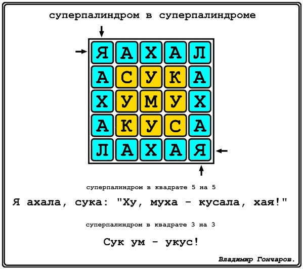 Суперпалиндром - в суперпалиндроме!(каждый суперпалиндром - читается с 4 направлений. смотри картинку)