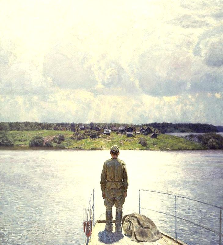 Возвращается с фронта солдат.