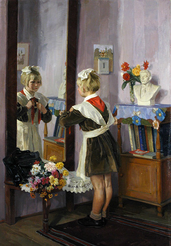 Цветочки в вазе, бюст вождя,