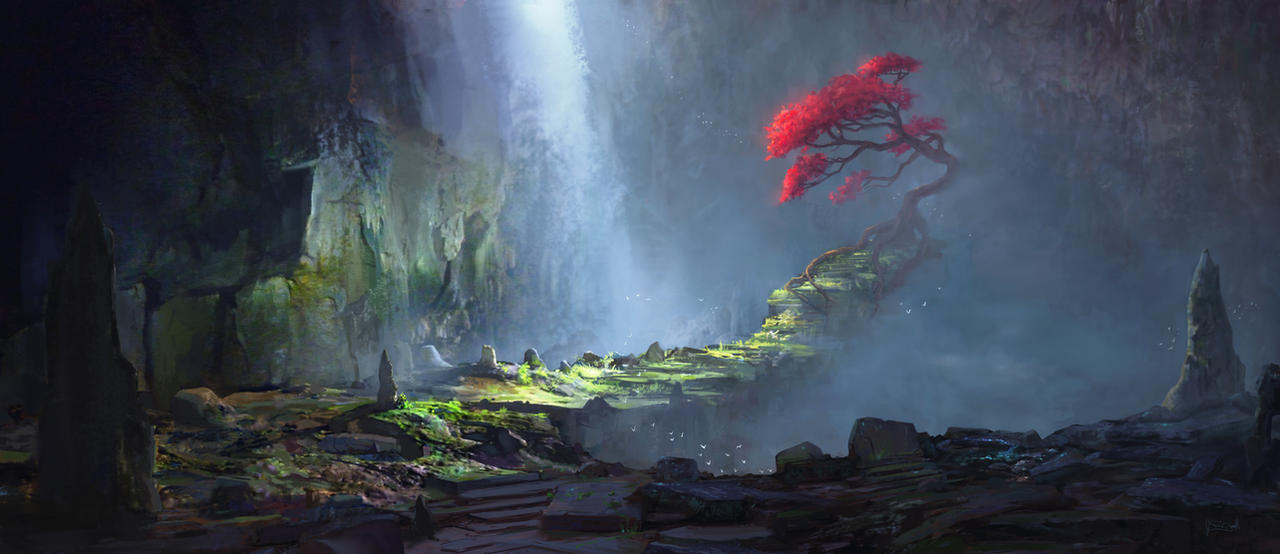 дерево летит с обрыва вниз, волна по нему бьет шквалиста.