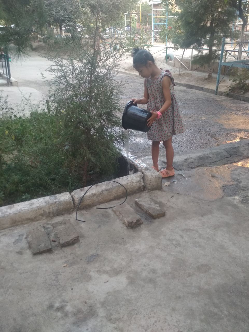 Фатима идёт с ведёрком, (наблюдаю из-за шторки), как природу уважает, из арыка поливает : сосны и арчу,- учит даже Хадичу.