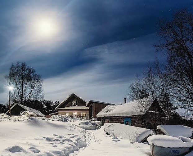 Заснеженная улица. Луна...