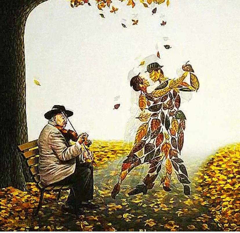 Листва вальсирует ему..