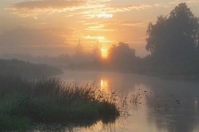 Над рекой расстилался туман,