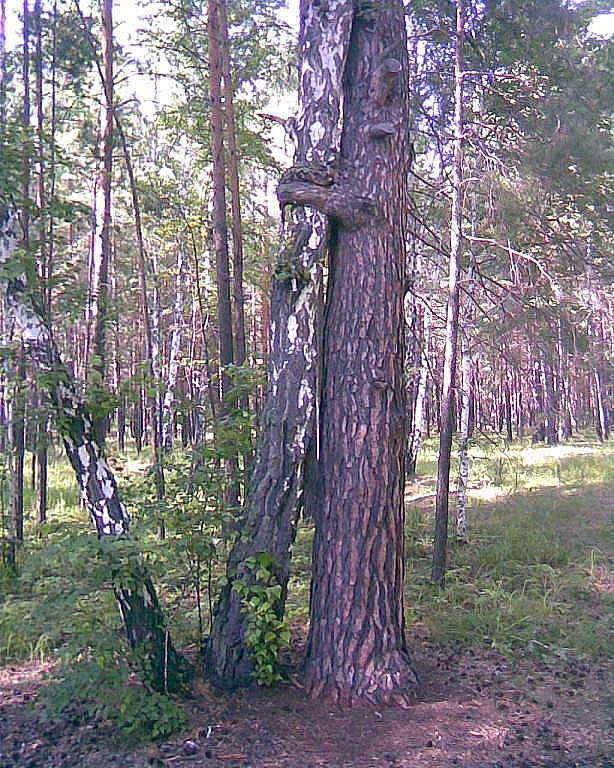 Мало того, что они росли всё приближаясь друг к другу, так ещё и дуб заботливо приобнял берёзку веткой. :)))