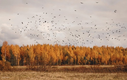 Грачи, собравшись утром в стаи,