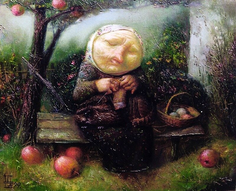 Глаза прикрыв, привычно вяжет,