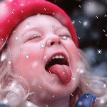 пробует снежинки