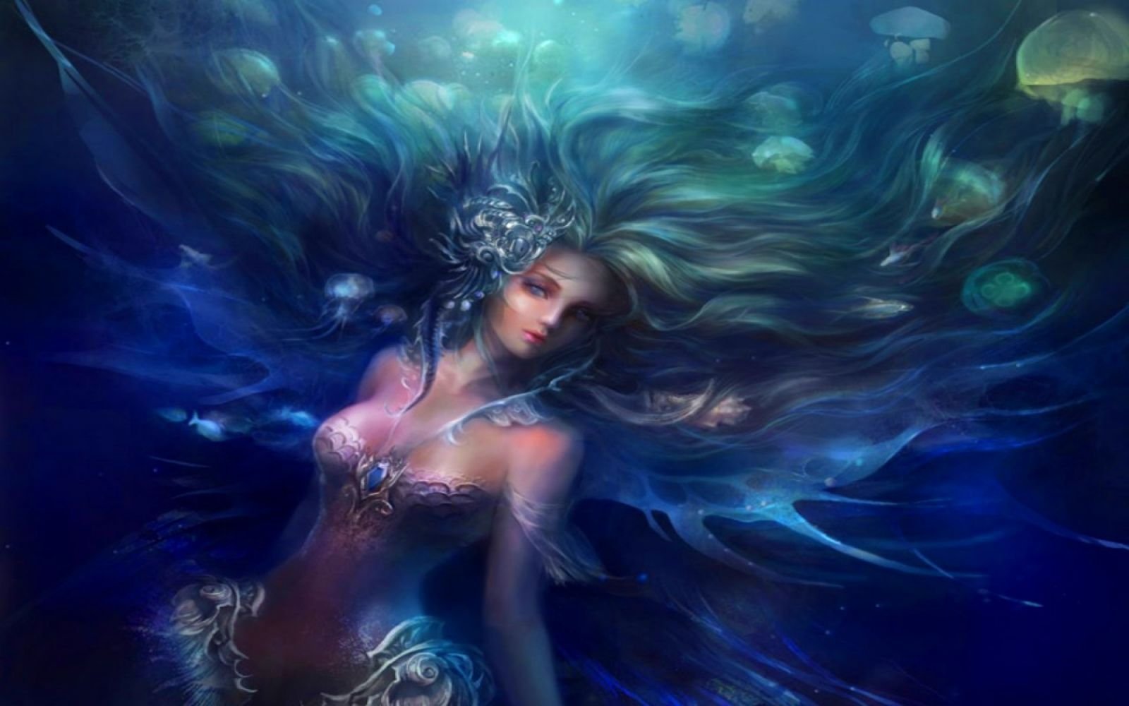 Купание русалки в море...