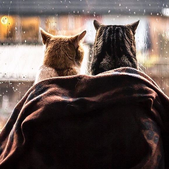 Коты сидят довольные