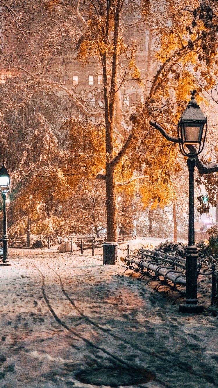 Под мягким желтым светом фонаря.