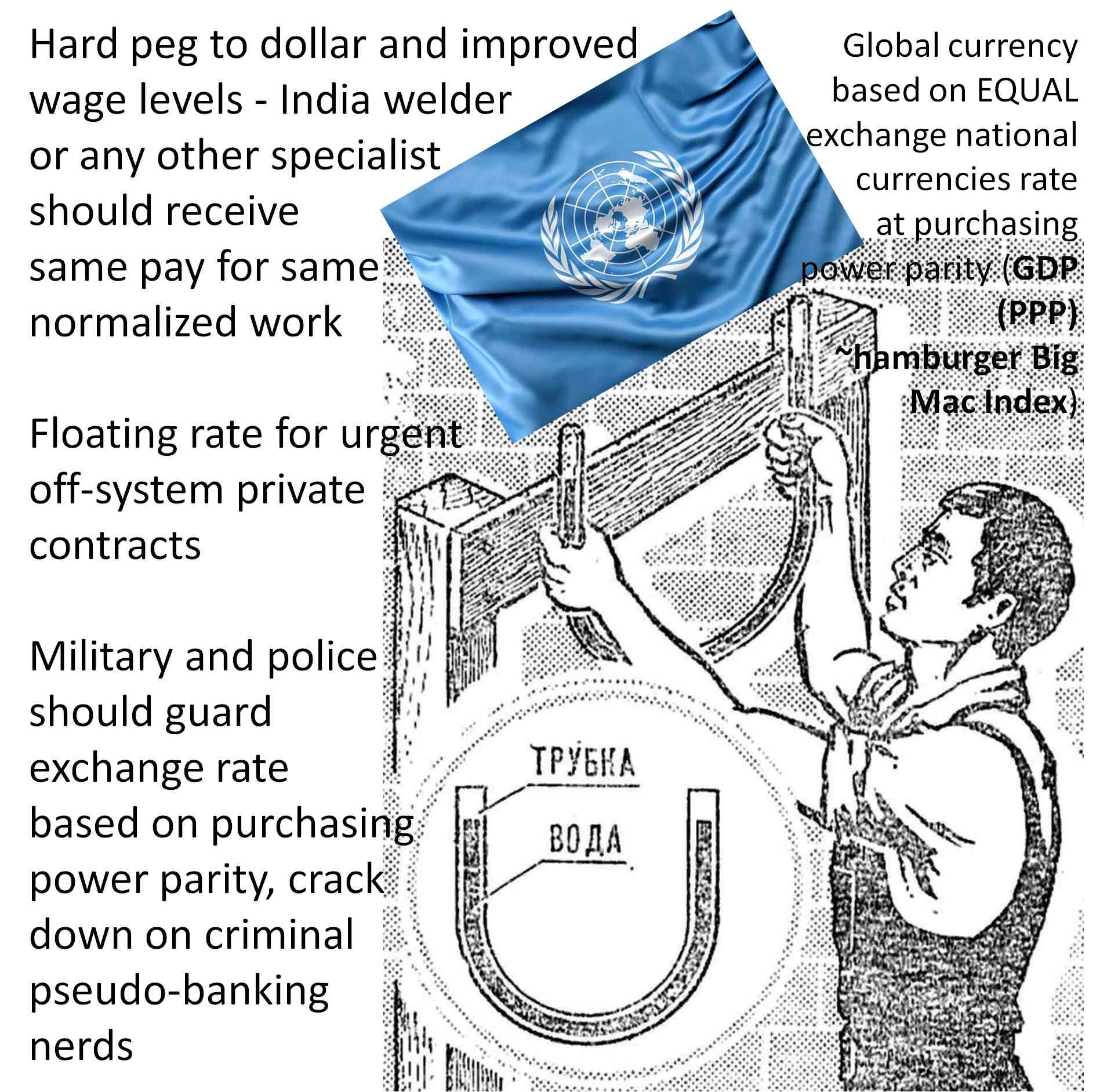 - hut, hut turn to all world citizens and working in civilization businessmen in front! Complete Bretton Woods exchange system of goods and money to reasonable level!