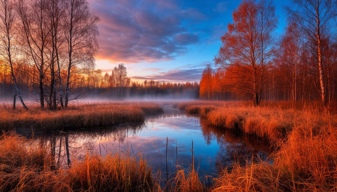 Распласталась крыльями заря.