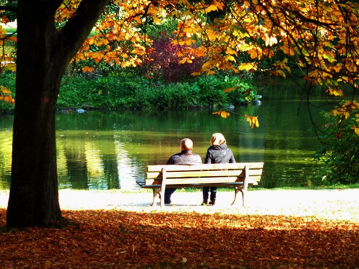 Отразилась пара на скамейке.